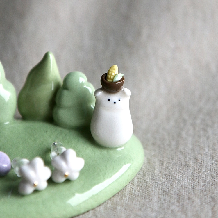 옥수수 바구니와 흰강아지, 반지걸이