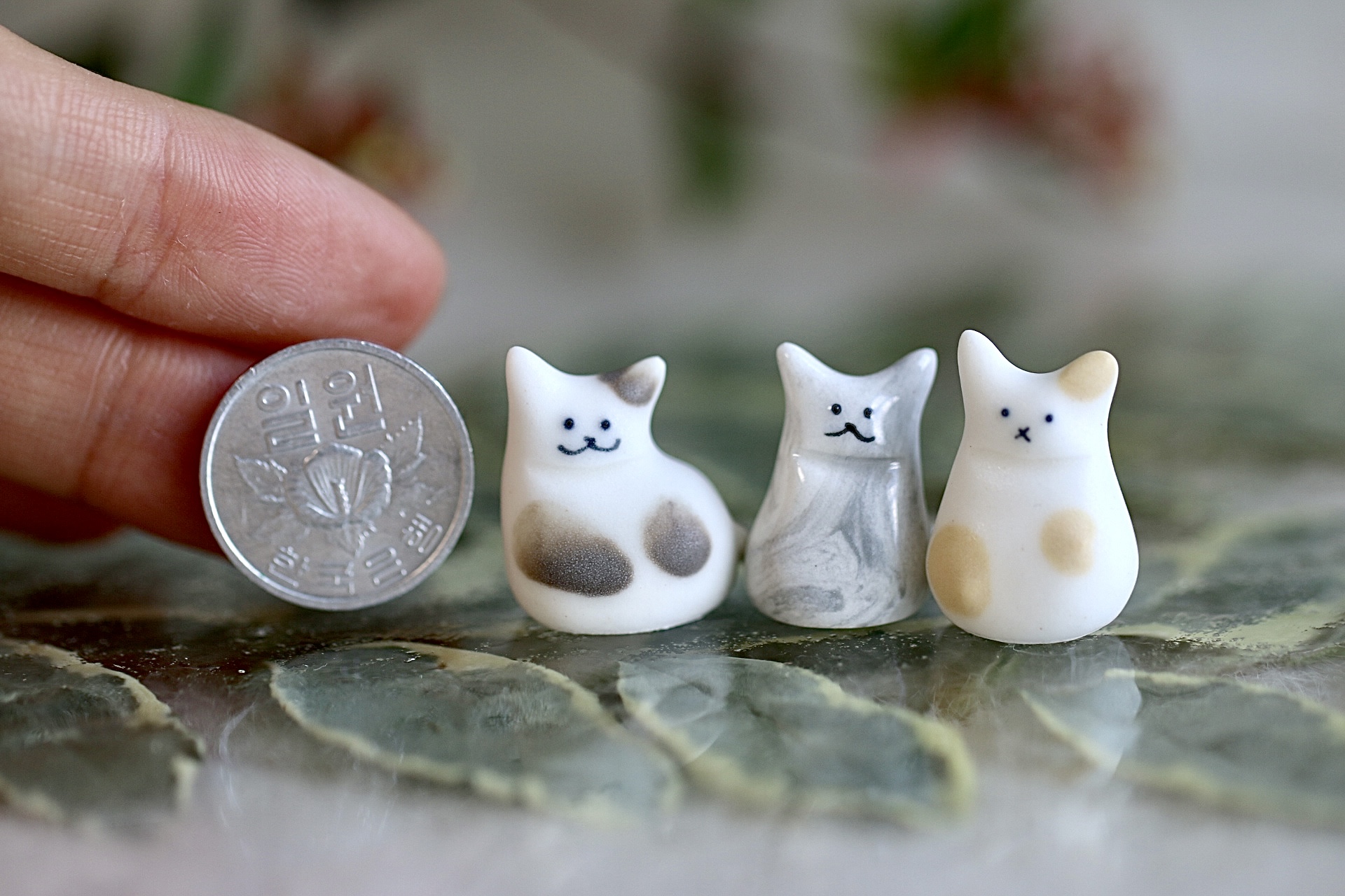 정말 정말 정말 작은 도자기 인형 고양이예요.